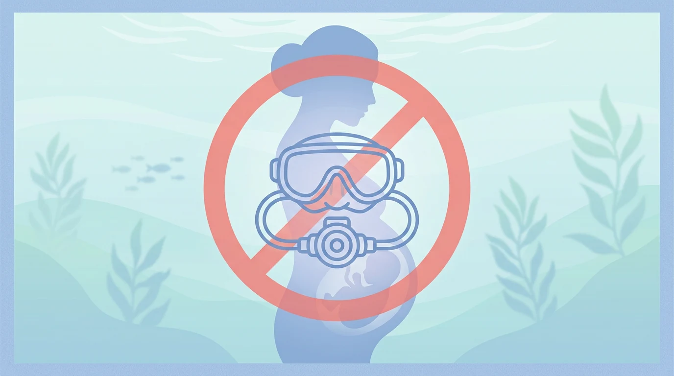 Revisa riesgos fisiológicos y operativos del buceo durante la gestación, recomendaciones internacionales y hallazgos de encuesta, concluyendo por prudencia evitar inmersiones en embarazo y priorizar orientación médica.