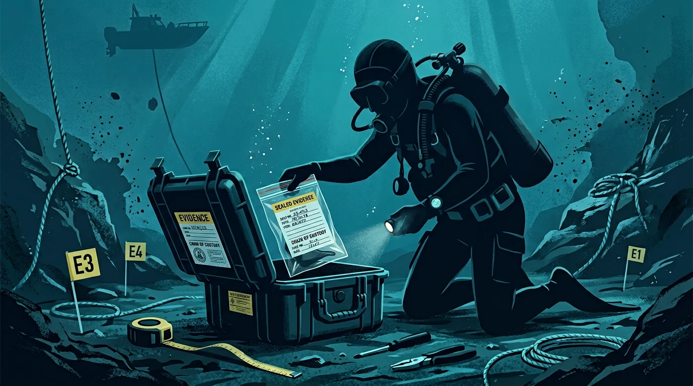 Analiza las implicaciones técnico-legales del manejo de evidencias en escenarios acuáticos y subacuáticos, con énfasis en dirección funcional, cadena de custodia, acreditación del personal buzo y admisibilidad de la prueba.